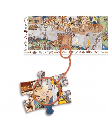 Το κάστρο βρίσκεται σε κατάσταση πολιορκίας και η μάχη και στα δύο στρατόπεδα είναι πολύ σκληρή. Συνθέστε το παζλ του μεσαιωνικού κάστρου, μάθετε απίθανες λεπτομέρειες για το πώς γινόταν μια πολιορκία και μετά παίξτε το παιχνίδι ανακάλυψης που υπάρχει στο περιθώριο του παζλ.