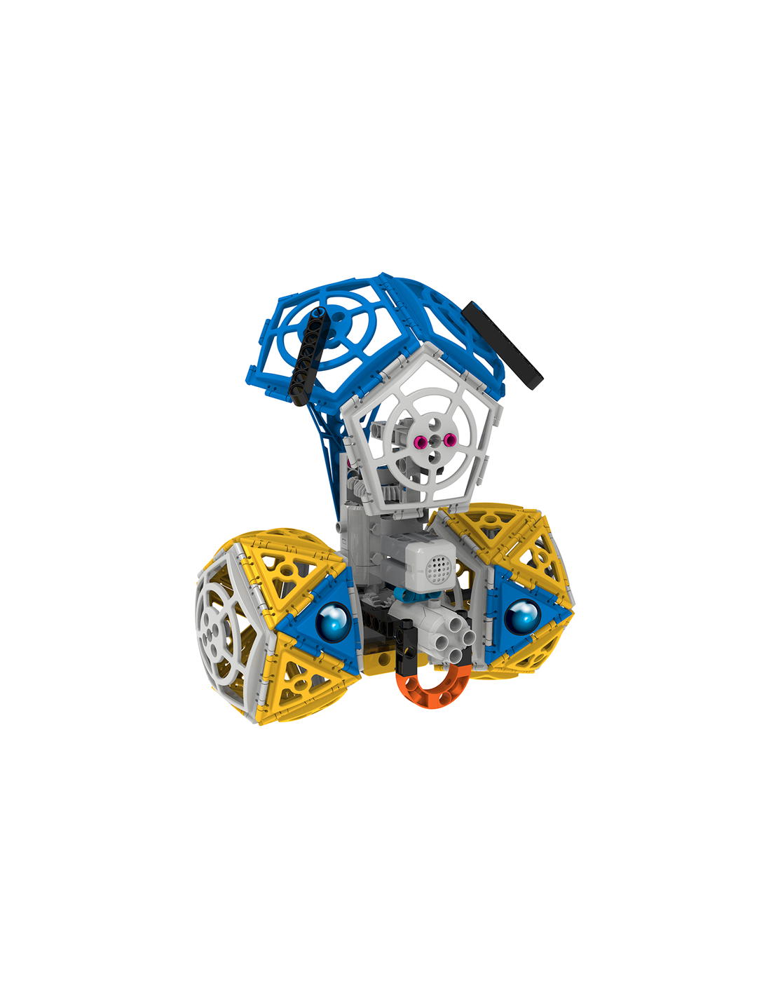 Κατασκευάστε μια φοβερή ρομποτική σφαίρα διαμέτρου 23cm και άλλα έξι ρομποτικά μοντέλα. Οδηγήστε το ρομπότ σας χρησιμοποιώντας τη χειριστήριο τηλεχειρισμού στην εφαρμογή Super Sphere, διαθέσιμη για tablet και smartphones ή φτιάξτε τα δικά σας προγράμματα χρησιμοποιώντας την εύκολη, οπτική γλώσσα προγραμματισμού στην εφαρμογή. Ο ενσωματωμένος αισθητήρας ήχου σάς επιτρέπει να προγραμματίσετε τα ρομπότ σας να εκτελεί συγκεκριμένες ακολουθίες εντολών ως απάντηση στον αριθμό των χειροκροτημάτων (ή άλλων δυνατών ήχων) που ανιχνεύει. Η ρομποτική είναι ένας τεράστιος και συναρπαστικός διεπιστημονικός τομέας που περιλαμβάνει τη φυσική, τη μηχανική και την επιστήμη των υπολογιστών. Αυτό το κιτ δίνει στα παιδιά μια απλή, διασκεδαστική και προσαρμόσιμη εισαγωγή στη ρομποτική που τους επιτρέπει να κατασκευάσουν επτά μηχανοκίνητα μηχανήματα που ελέγχονται από προγράμματα και έναν αισθητήρα ήχου. Κάθε μοντέλο ρομπότ κινείται με μοναδικό και ενδιαφέρον τρόπο, αποδεικνύοντας πώς τα ίδια μηχανικά μέρη μπορούν να ενωθούν για να δώσουν πολλά διαφορετικά αποτελέσματα.
