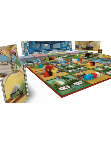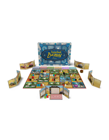 Sid Sackson's classics Samarkand & Bazaar are now combined as two games in one box with this new edition of both games. Samarkand is a fast-paced trading and selling game set in exotic Asia Minor. Cunning Merchants buy, exchange, and sell goods to build wealth. When visiting Nomad Camps and after offering gifts for their hosts’ hospitality, Merchants trade for the goods they desire. When visiting Oases, they may purchase random goods. Ultimately, these Merchants travel to the bazaars in Cities such as Samarkand or Isfahan to sell the goods they have acquired. Merchants must plan which desert paths to use to travel efficiently between the Nomad Camps, Oases, and Cities so they can earn the quickest (and greatest) profit! In Bazaar, players attempt to gain the right combination of colored cubes through skillful trading to purchase the wares displayed in the Bazaar. Values of the various wares are determined by the number of cubes the purchaser has left over following the transaction. Trading is governed by the current rates posted at the Exchange. When the wares from two stalls have been completely sold, the Bazaar is closed, and the game ends. The player with the highest score wins!