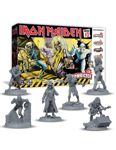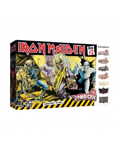 Iron Maiden Character Pack #2 includes six miniatures. Along with the figures, the pack includes material to use these figures in numerous games in various ways. Games include: Zombicide 2nd Edition, Zombicide: Undead or Alive, Cthulhu: Death May Die, Zombicide: Black Plague, Massive Darkness 2, Ankh: Gods of Egypt, Zombicide: Invader, and Rising Sun.