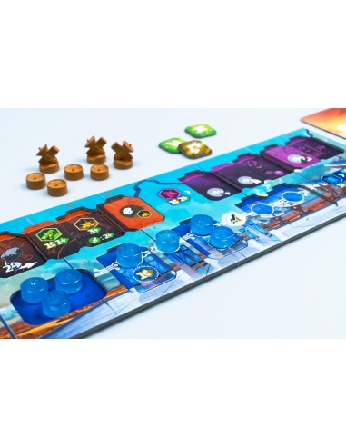 The game is played in 5 rounds. The player with the starting player marker takes the first turn of the round. Players take turns in clockwise order, skipping any players that have already passed for the round. At the end of round 5, the final score is calculated and the player with the most points wins.