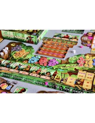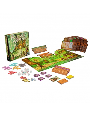 Potions of Azerland utilizes a unique simultaneous action selection mechanism where understanding the goals of your opponents in each round will give you the upper hand. Decide whether to drink your newly made potions for temporary boosts and prolonged powers or give them to an ever changing group of travelers for points and other bonuses. After 6 rounds the player who has garnered the most prestige will be the winner!