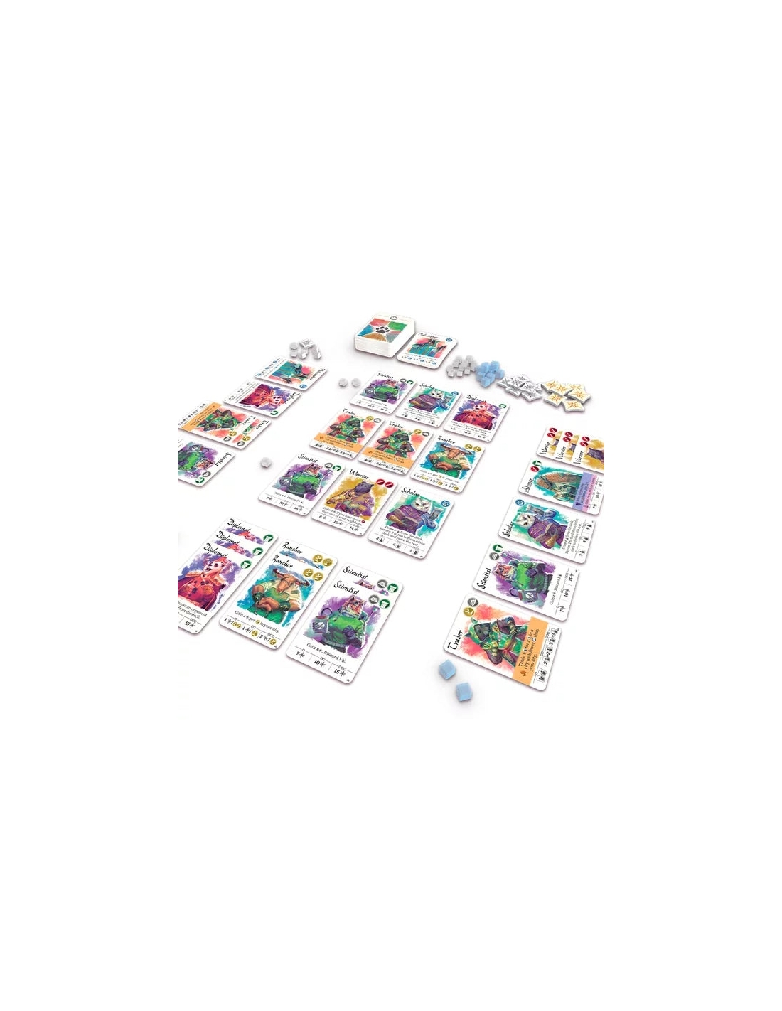 Play with 7-10 animal citizen types per game, chosen from 30 available creatures and combined into one shared deck. Every citizen type has distinct powers, making each game's action combos uniquely variable.