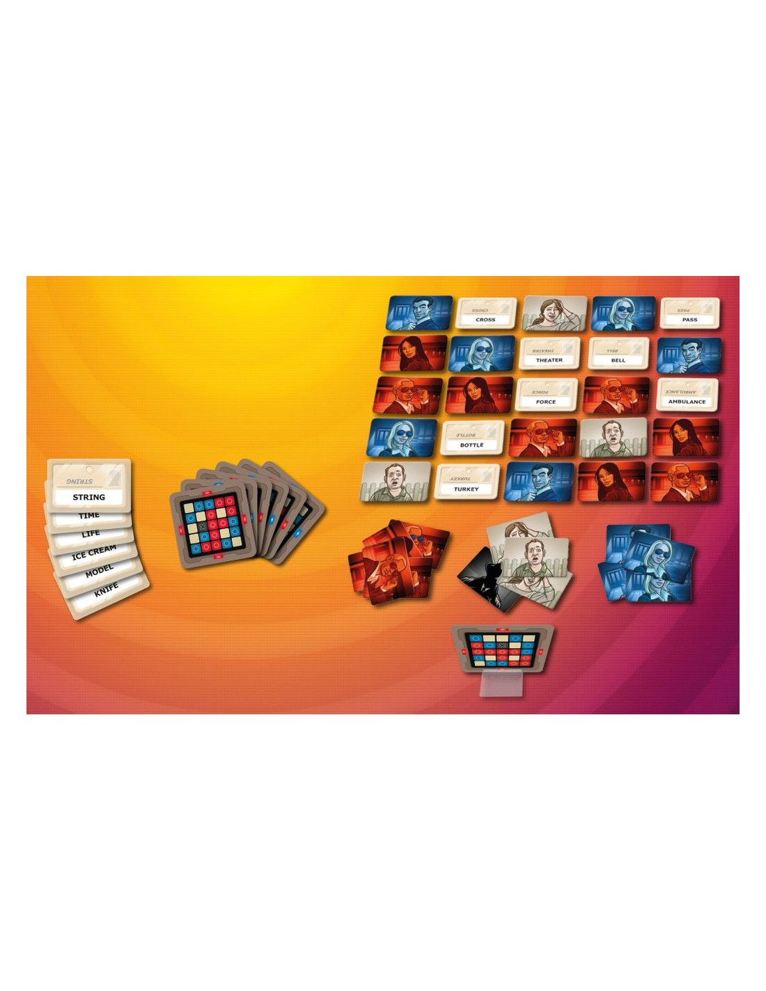 Two rival spymasters know the secret identities of 25 agents. Their teammates know the agents only by their codenames — single-word labels like "disease", "Germany", and "carrot". Yes, carrot. It's a legitimate codename. Each spymaster wants their team to identify their agents first...without uncovering the assassin by mistake.