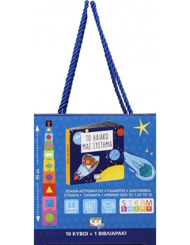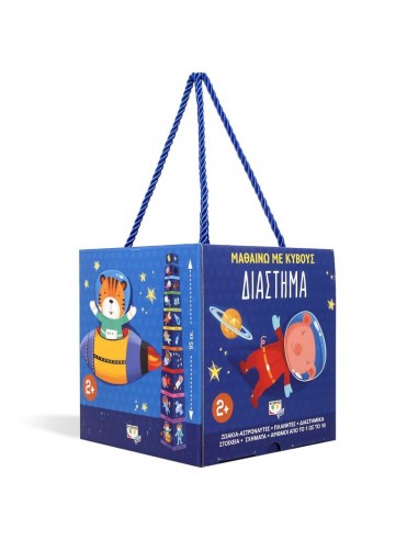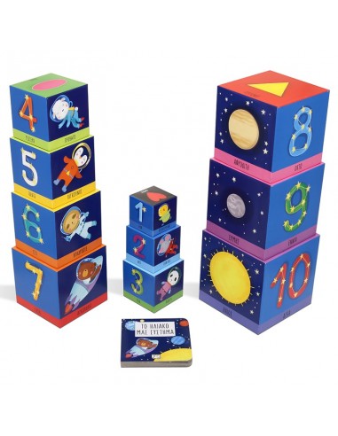 By placing one cube on top of the other, children learn the shapes, numbers from 1 to 10 and the planets together with cute little astronaut animals, while at the same time building a tower almost a metre high.
