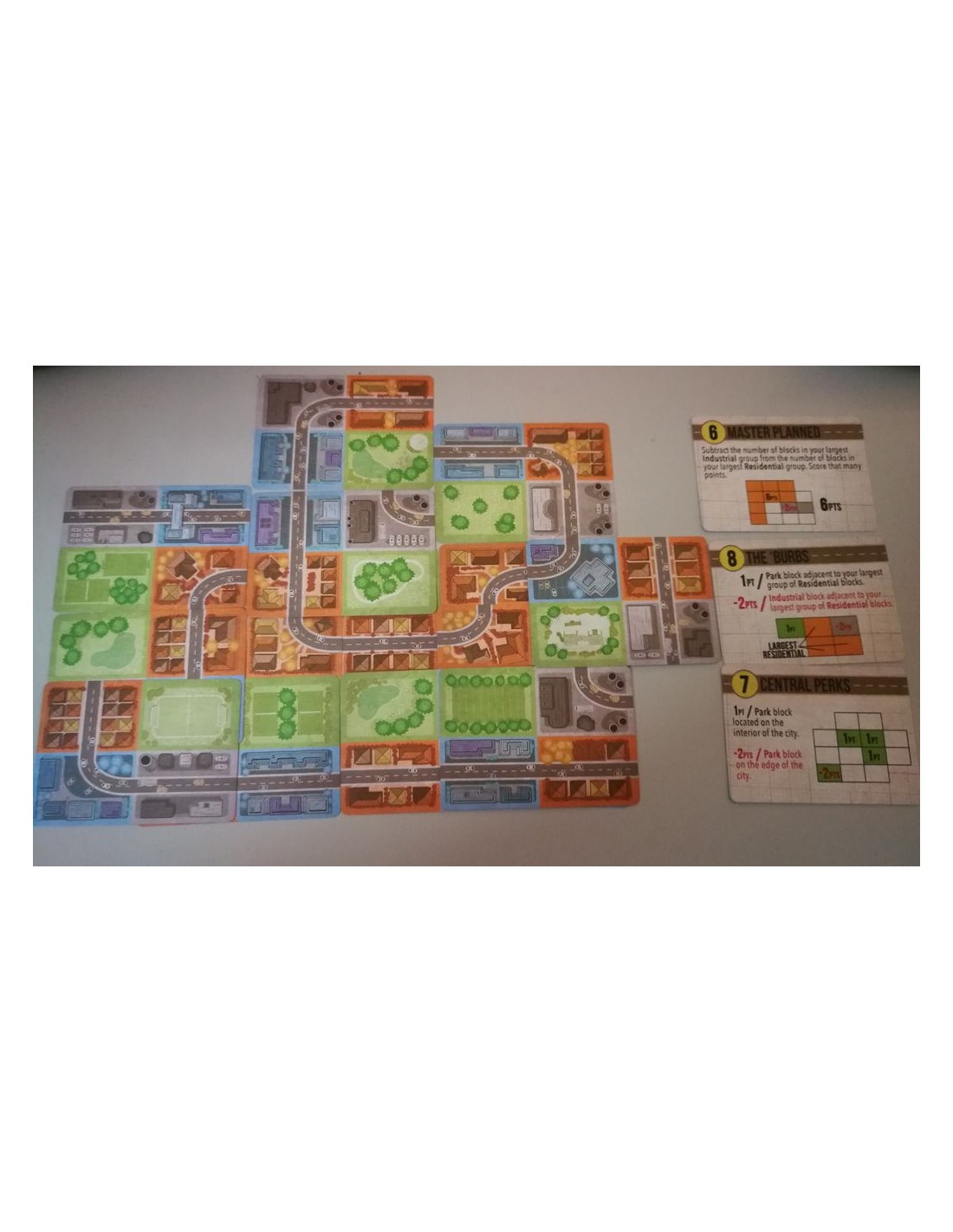 If anyone can turn this tiny town into a thriving civic center it's you. In Sprawlopolis, 1-4 players work together to build a new city from the ground up. Using only 18 cards and a variable scoring system, the game is never the same twice. Each turn, players will play 1 card from their hand to the growing city, trying to score as many points as possible. Players will have to communicate and plan without revealing their own cards in order to most efficiently develop large areas in each of the 4 zone types. Watch out though, the city hates paying for road maintenance so each road will cost you points in the end. When all cards have been placed, the game ends and players see if they have met dynamically generated minimum score for their game.