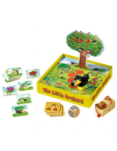 A cooperative game for children. The players have to pick up all the cherries, before the crow can steal them from the tree. With good memory and a little bit of deduction, the game can be won, but if you forget which tiles have the crow on the other side, watch out! He'll eat all your cherries!
