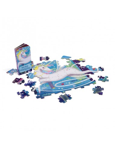 Ένας μαγικός μονόκερος με μια χαίτη στα χρώματα του ουράνιου τόξου, ένα χρυσό κέρατο και αστραφτερά φτερά ̶ ανακαλύψτε τη γοητεία των μονόκερων και μπείτε έναν κόσμο γεμάτο μαγεία, διαβάζοντας το εικονογραφημένο βιβλιαράκι και συναρμολογώντας το παζλ 100 κομματιών. Το όμορφο κυλινδρικό κουτί είναι ιδανικό για τη φύλαξη και τη μεταφορά του παζλ και του βιβλίου.