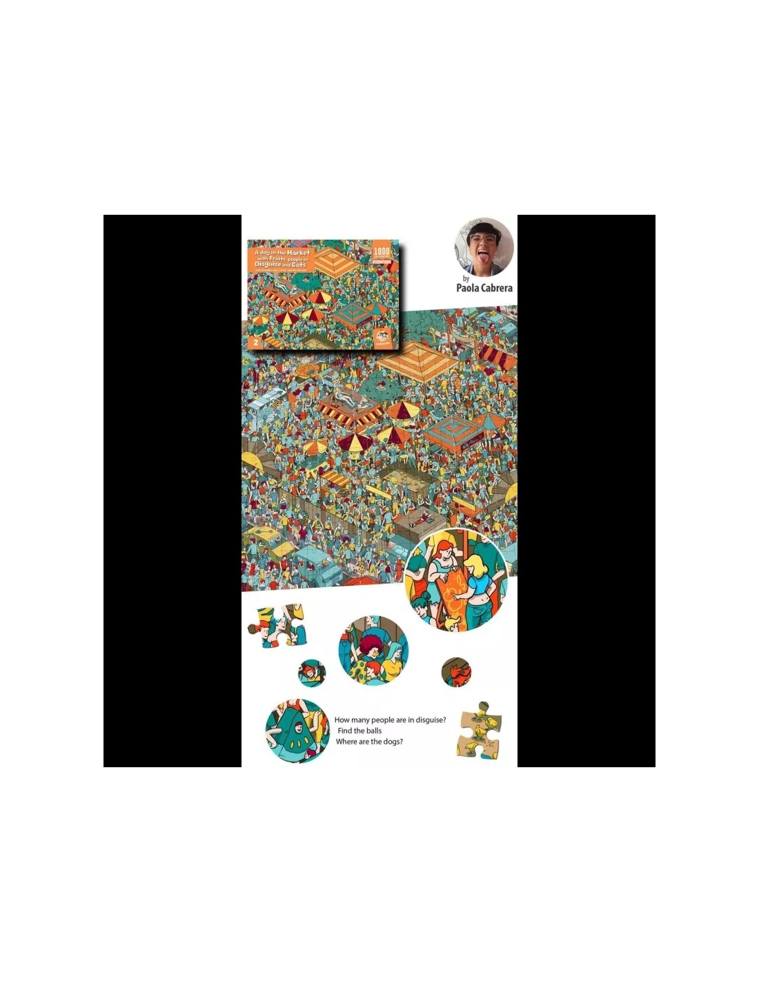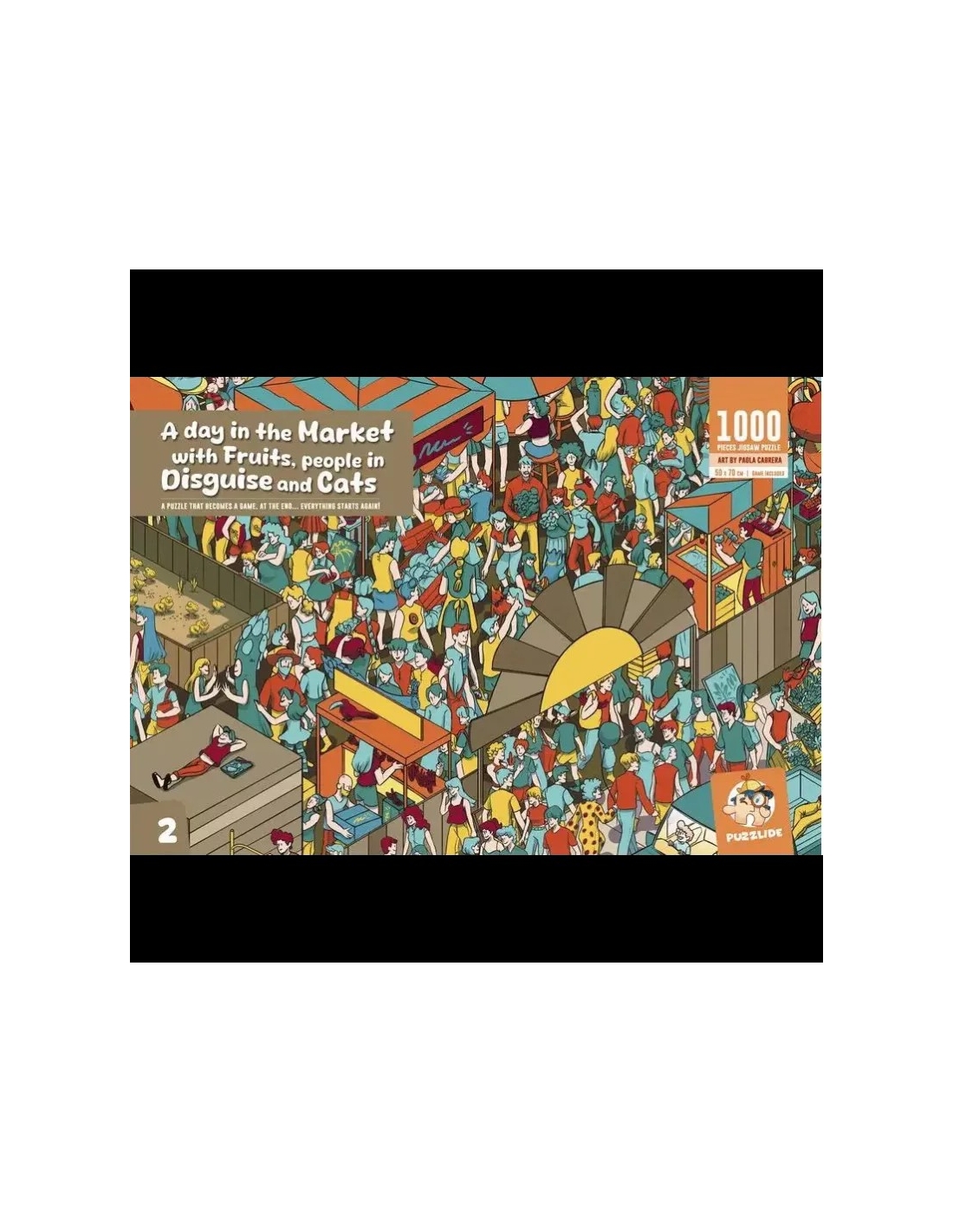 "Where’s Wally?"-style puzzle with hidden-object gameplay. Puzzlide collection: 1000 pieces puzzle, high quality pieces (2.2 blue), seek and find games included with playing cards.